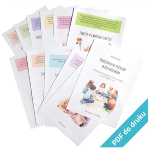 „Emocjonalne przygody przedszkolaków” to gra integracyjna w formacie PDF do samodzielnego wydruku, stworzona z myślą o wsparciu emocjonalnego i społecznego rozwoju przedszkolaków. Gra zawiera 20 kategorii pytań, z których każda obejmuje 12 pytań dotyczących różnych aspektów życia dziecka i związanych z nimi emocji. To narzędzie jest doskonałe zarówno dla pedagogów, nauczycieli, psychologów, jak i rodziców, którzy chcą pomóc dzieciom w lepszym zrozumieniu siebie i innych.