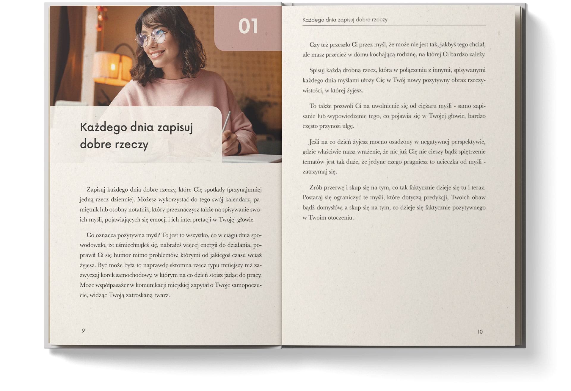 Już od pierwszych rozdziałów książka zaprasza do prostych, ale znaczących zmian w codziennym myśleniu. Poniżej znajdziesz skrócony opis trzech pierwszych ćwiczeń tak, byś mógł poczuć, jak wygląda praca z tym przewodnikiem w praktyce.
