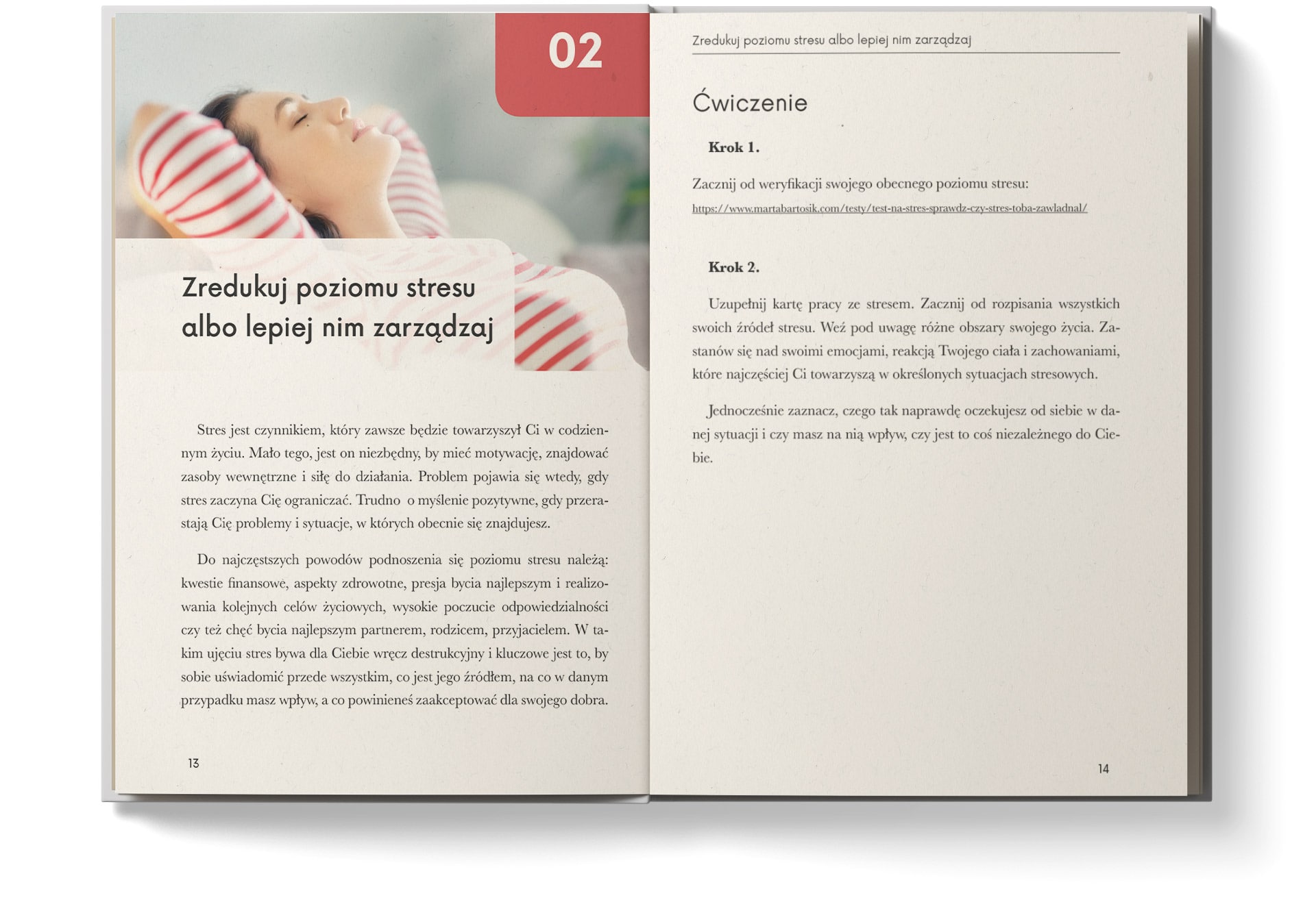 Ten rozdział pokazuje, że stres sam w sobie nie jest wrogiem. Problem zaczyna się wtedy, gdy przejmuje kontrolę. Ćwiczenia pomagają rozpoznać źródła napięcia i oddzielić to, na co masz wpływ, od tego, co warto zaakceptować.