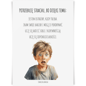Zamów plakat „Potrzebuję tych emocji: strach” już dziś i pomóż dzieciom odkryć emocje, zrozumieć je oraz nimi zarządzać w sposób, który wspiera ich zdrowy rozwój emocjonalny.