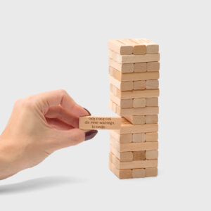 Gra składa się z 45 drewnianych klocków, na których znajdują się pytania i zadania związane z emocjami. Standardowa rozgrywka polega na budowaniu wieży, a następnie wyciąganiu kolejnych klocków i odpowiadaniu na pytania lub realizacji zadań. Ale to nie wszystko! Wieżę można dostosować do potrzeb pracy indywidualnej czy grupowej: